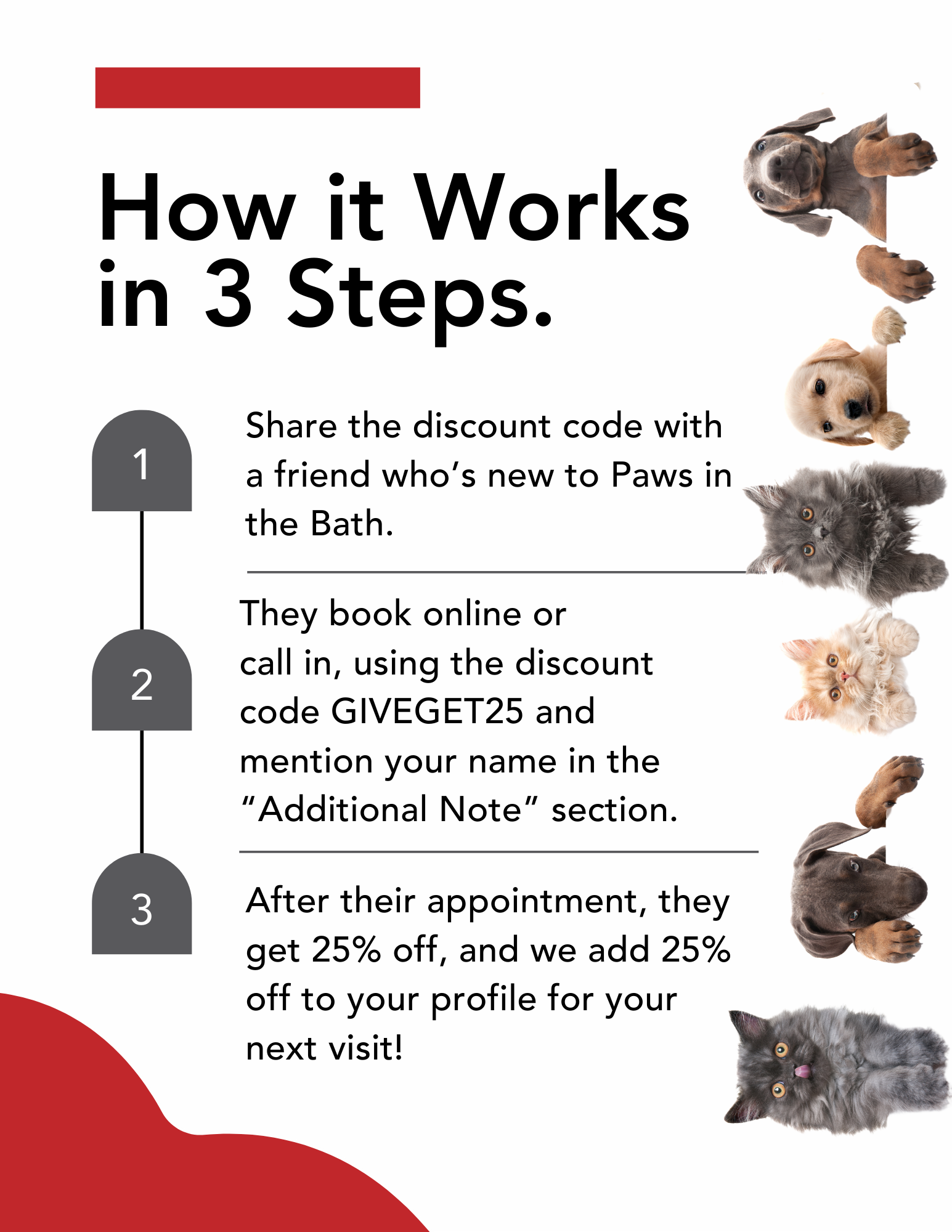 Give 25%, Get 25%! Simply share code GIVEGET25, and when a friend books their first appointment, they’ll get 25% off—and so will you!
